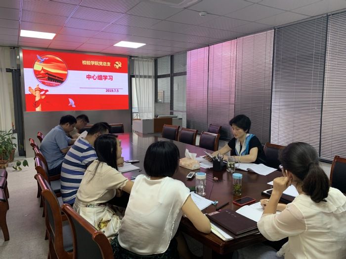 7月5日上午,必赢76net线路唯一官方网站党总支于学院会议室召开2019年度第七次中心组(扩大)学习会议。学院党委副书记、副院长崔晓霞主持会议,学院全体教师党员参会。